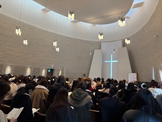 今回、初めて開催された大学での成人記念礼拝は、昼休みの12時40分から大勢の学生とともに礼拝が守られました。