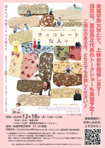 「金城学院大学 × 久遠(QUON)チョコレート」オリジナルコラボパッケージ商品の販売と『チョコレートな人々』上映会開催のお知らせ